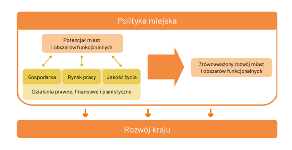 Ustalono już powyżej, że krajowa polityka miejska jest elementem szerszej polityki rozwoju, która uznaje miasta za obszary grające istotną rolę w rozwoju społeczno-gospodarczym kraju. Z tego powodu konieczne jest identyfikowanie i adresowanie potencjałów, które stanowią o sile miast, jak również diagnozowanie elementów stanowiących bariery rozwoju. Istotne jest tu rozumienie pojęcia miasta w kategoriach funkcjonalnych, czyli szersze, niż tylko w granicach gminy.